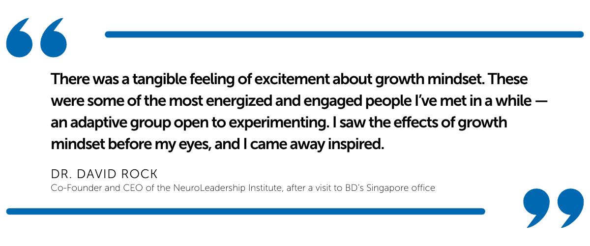 Recognizing how important a growth mindset is to overcoming challenges, BD partnered with NLI to introduce and reinforce the concept of growth mindset across the company. Over 11,500 global managers participated in the initiative, using a virtual approach shown to be 50% more effective than in-person learning. When the initiative was complete, the managers were practicing specific new habits: